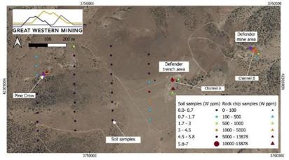 Great Western Mining Corporation plc (LON:GWMO), a strategic minerals exploration and development company, has announced assay results from a machine-cut channel sampling programme at its Defender Tungsten Project in Mineral County, Nevada USA.