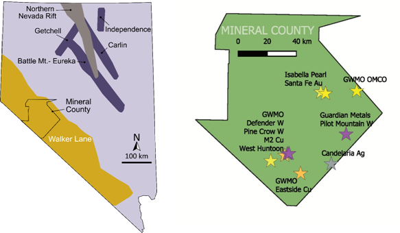 | Figure 2: Nevada state map showing Mineral Countyand regional geology | Figure 3: Mineral County, Nevada |