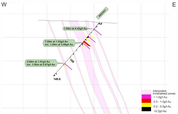 | MBDD031 | 17.50 | 18.50 | 4.42 | 1.00m at 4.42g/t Au |
