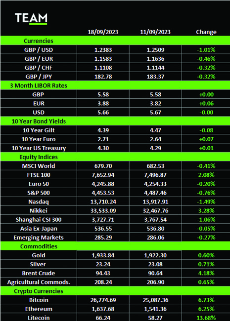 TEAM Asset Management’s global weekly market review for week commencing 11th September. TEAM Asset Management is a Jersey-based independent asset management company of AIM-listed parent, TEAM plc (LON:TEAM).